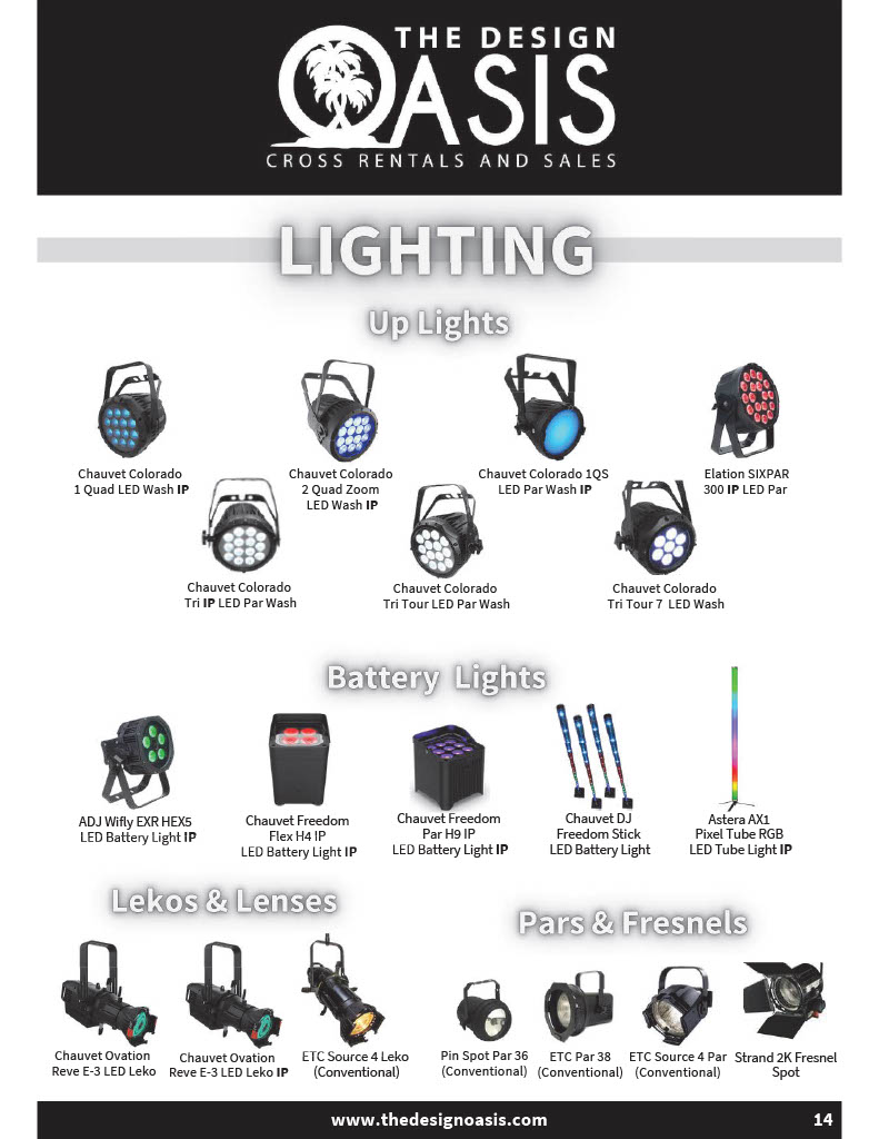 Your one-stop shop for all production needs, offering a wide selection of lighting center, video, audio, staging, and other AV gear available for rental.