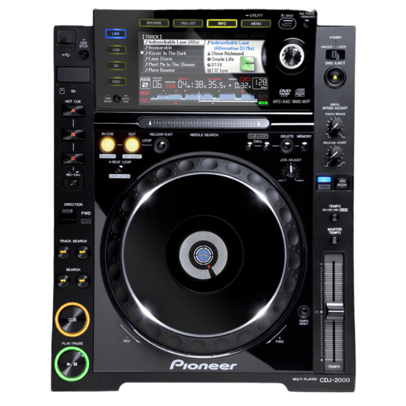 The CDJ-2000 fizzes with fresh DNA and can play music from multiple sources, including CD, DVD, USB storage devices and SD memory cards.
