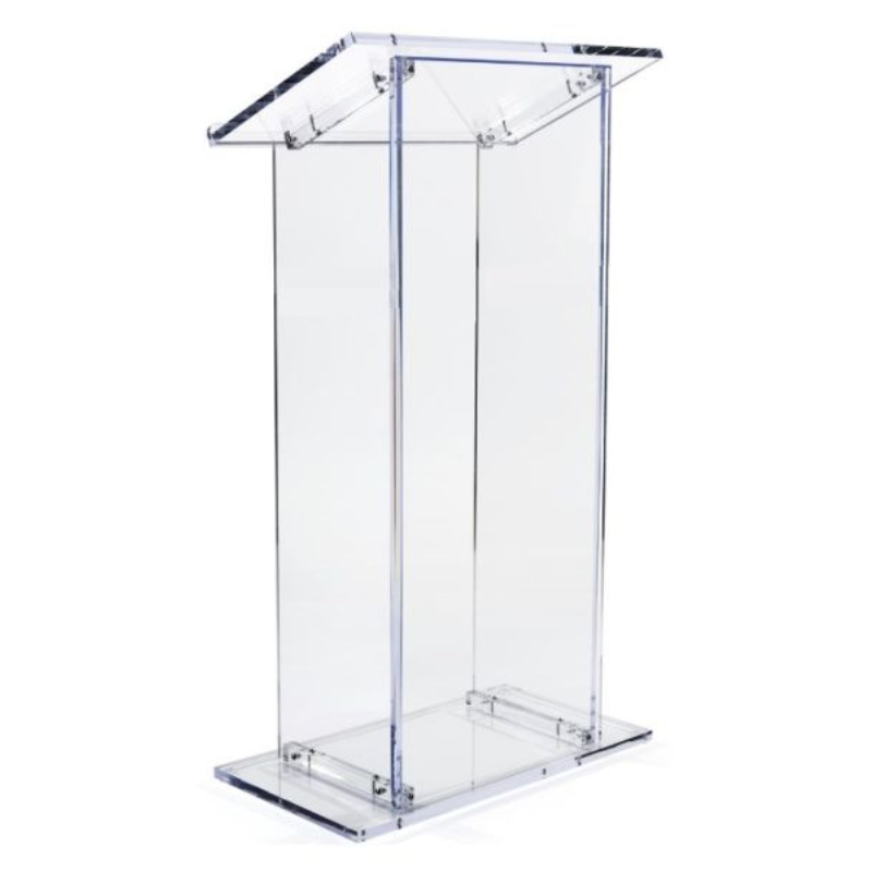 This great looking clear acrylic lectern will be perfect for any location. Standing 47.5″ tall it features solid acrylic construction with polished edges and silver hardware.